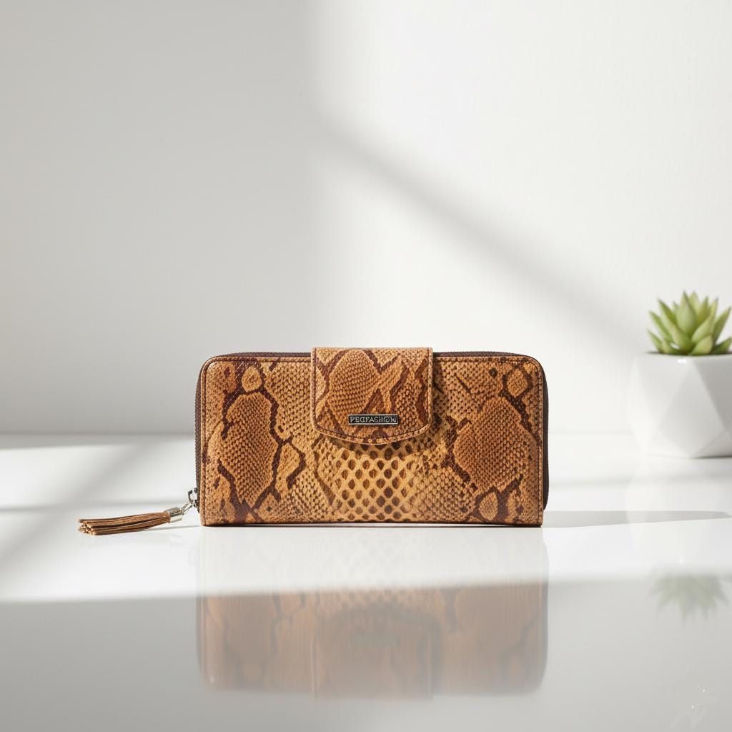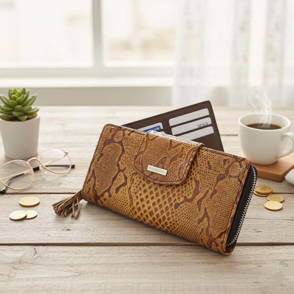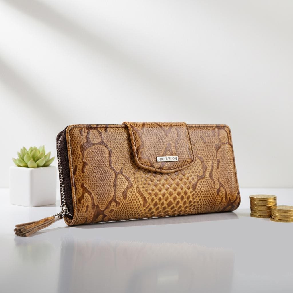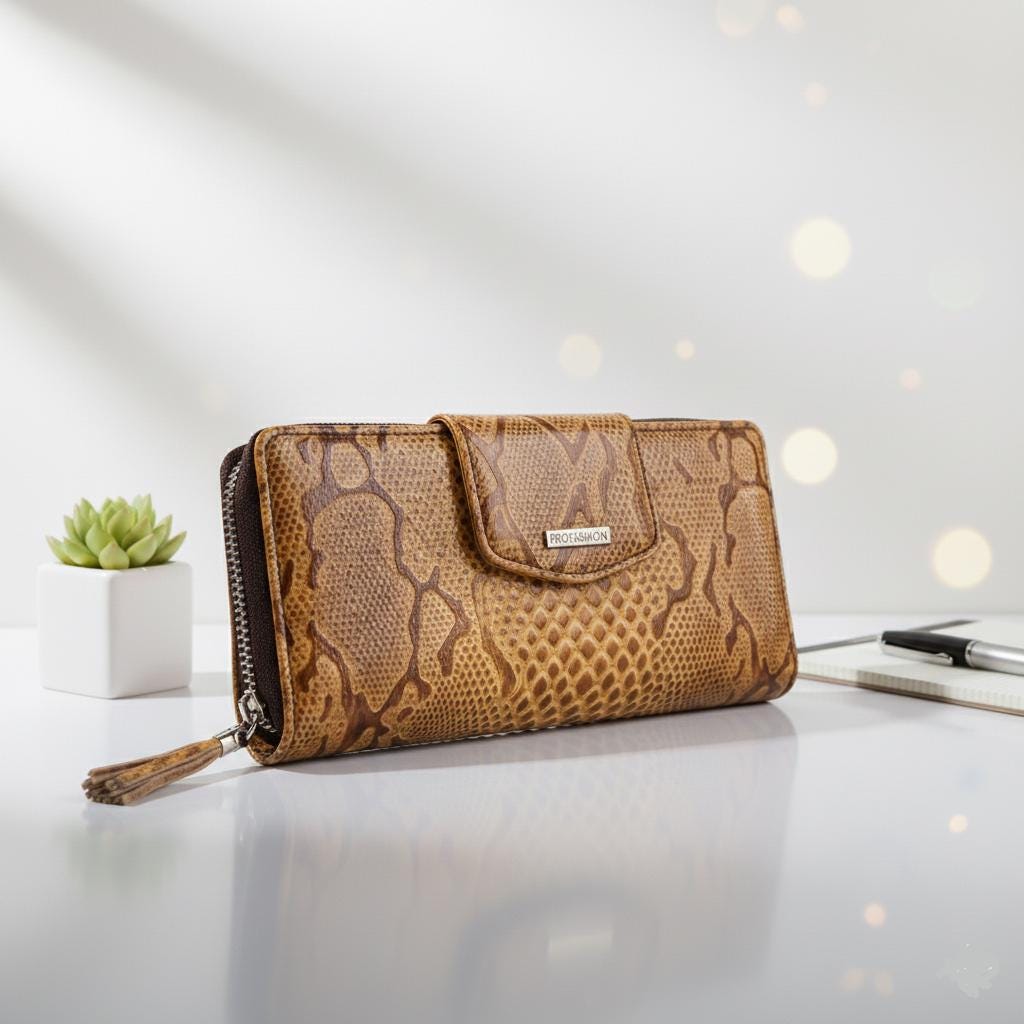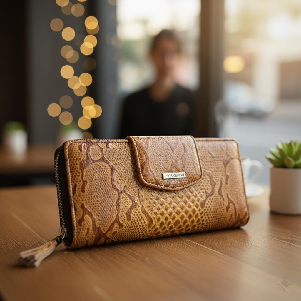 Don't settle for a plain wallet, elevate your fashion game with our Alligator Pattern Leather Amber Wallet.