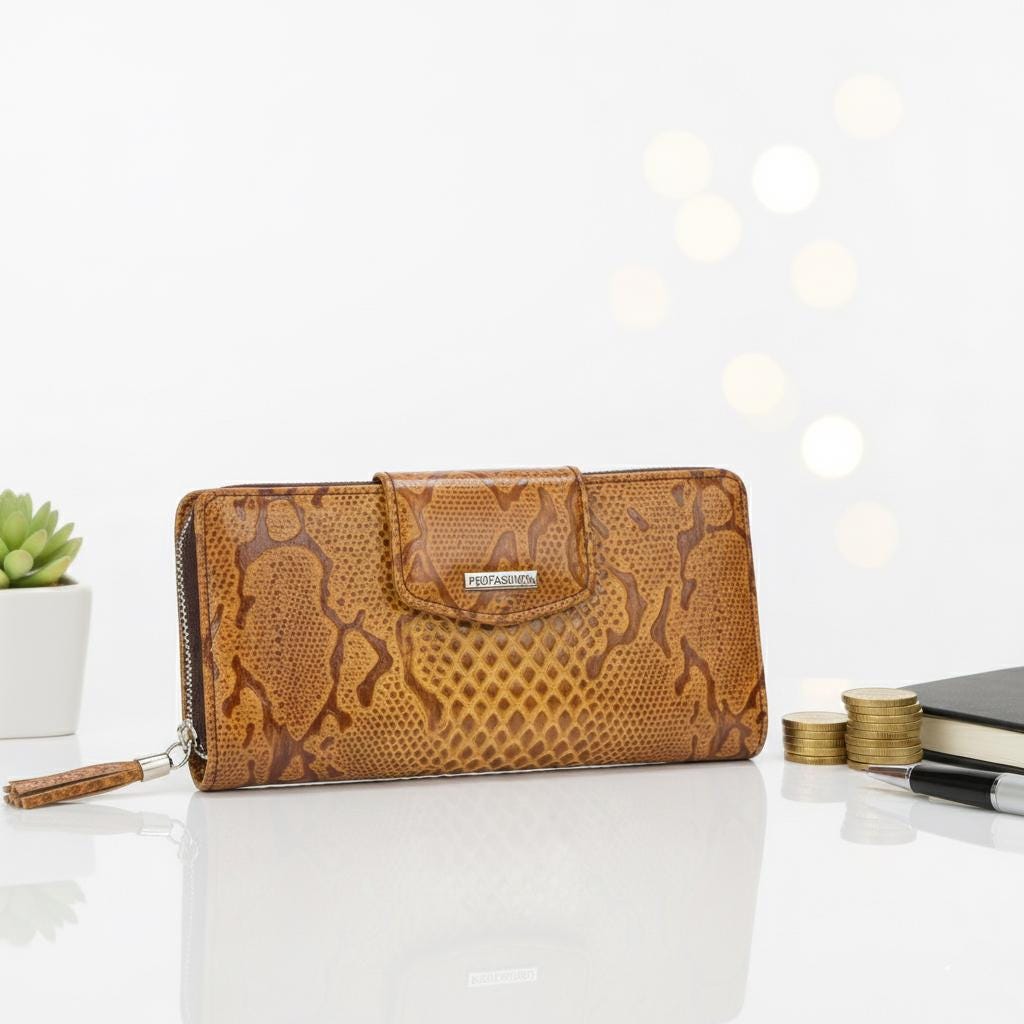 Chic Amber Leather Wallet with Alligator Pattern – Sophisticated Design