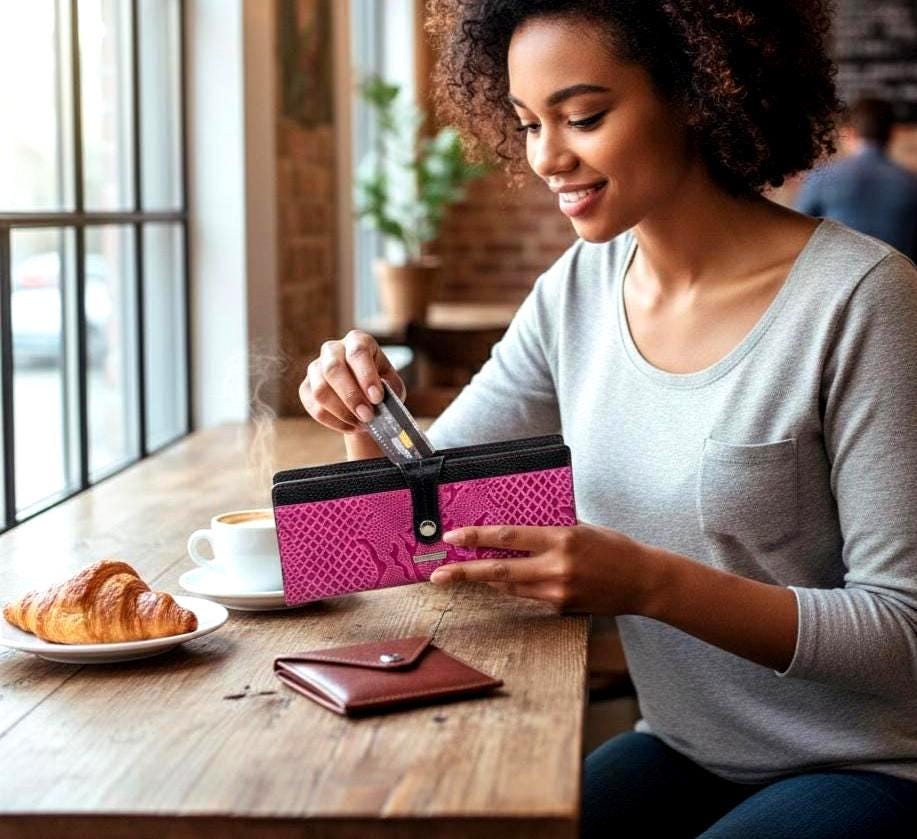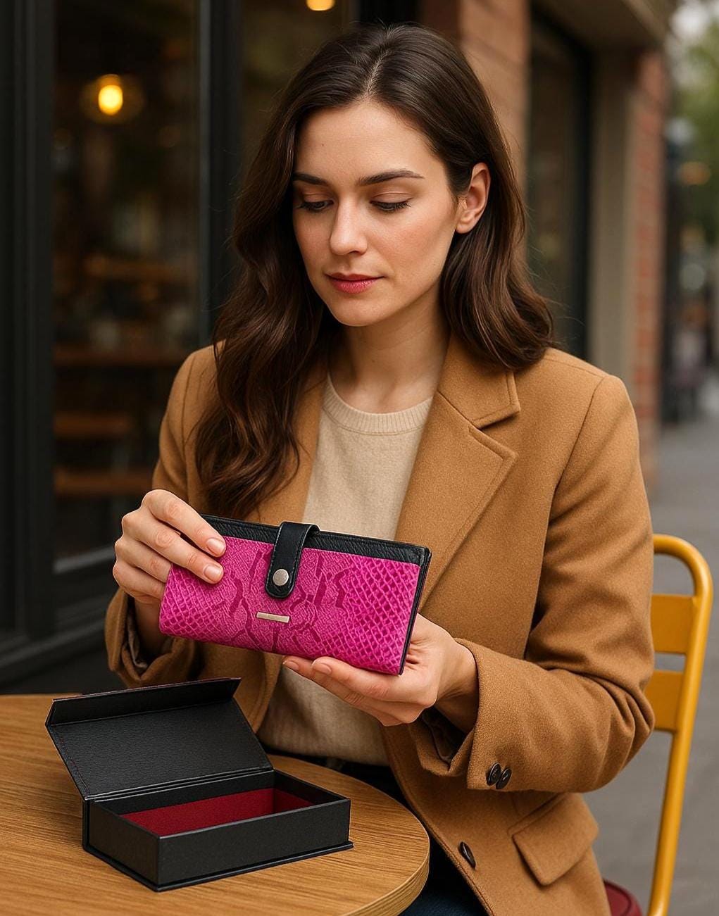 Whether you're looking for a special gift for a loved one, a practical treat for yourself, or a stylish accessory to complete your look, this pink and black crocodile wallet is the perfect choice. Its unique design and superior craftsmanship make it a true work of art.