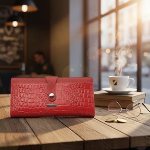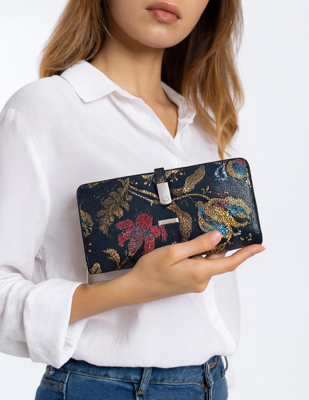 Floral Leather Wallet - Soft Luxurious and Unique, Big Size, Gift For Ladies