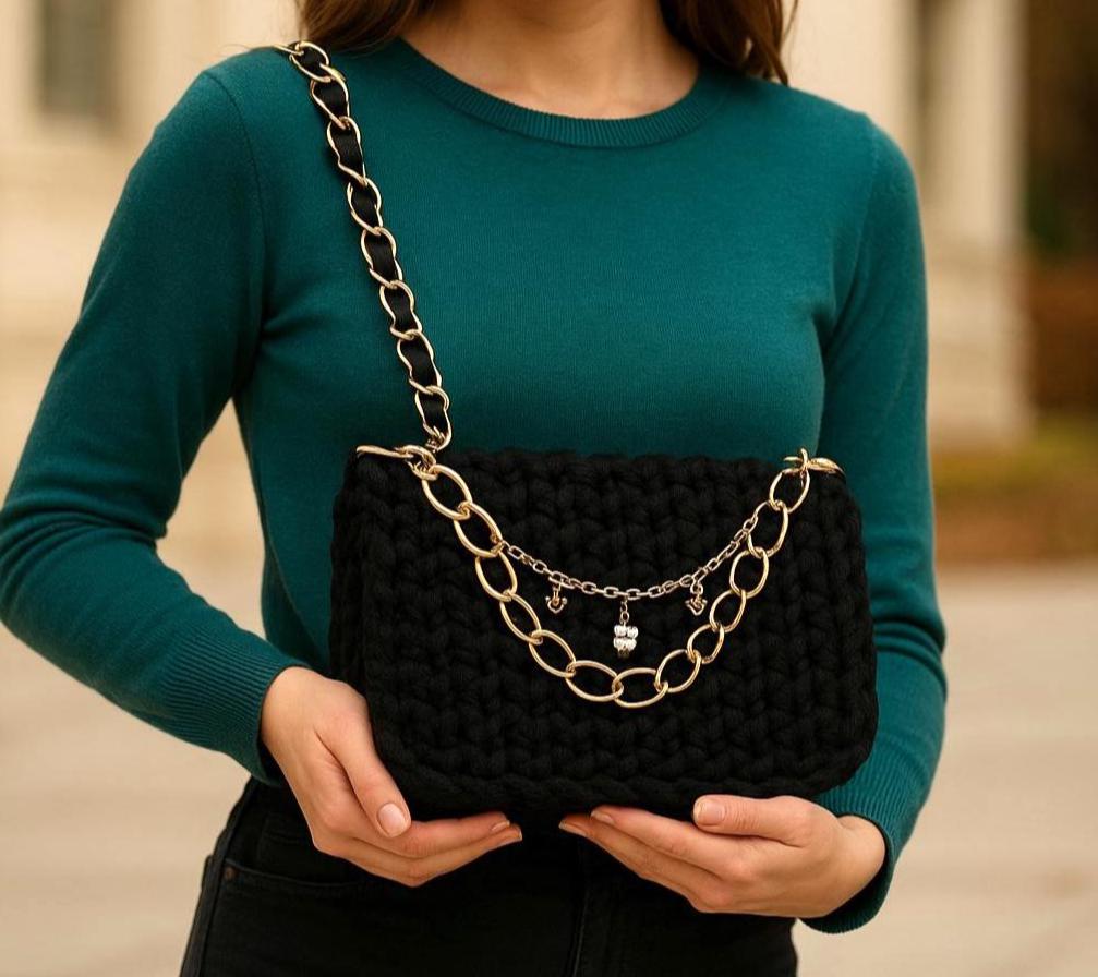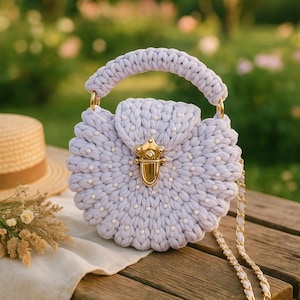 This bag is versatile and suitable for both casual and formal occasions. Its elegant design can be paired with any outfit to elevate your style. Hand-knitted with care, this bag is a statement piece that will turn heads and make you feel confident wherever you go.